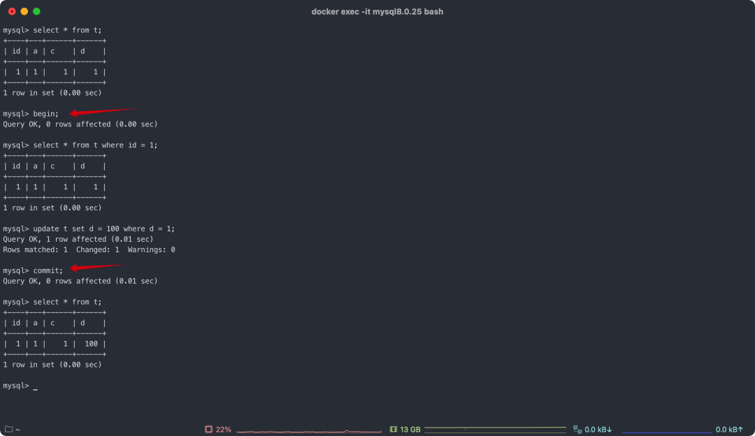 這是大家熟知的一種方式,其中開啟事務的方式 start transaction 和 begin 是相同的。