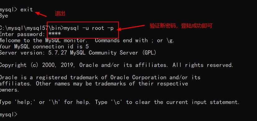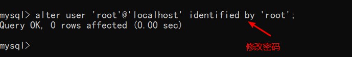 ⑥修改密碼:alter user 'root'@'localhost' identified by 'root';(by 接著的是密碼)