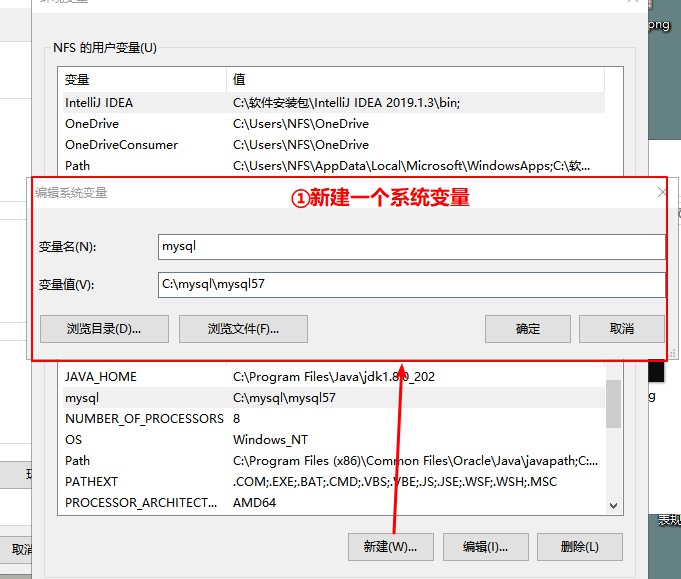 ?、诎研陆ǖ膍ysql變量添加到Path路徑變量中,點擊確定,即完成: