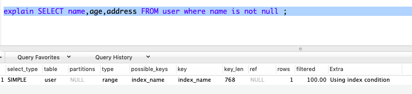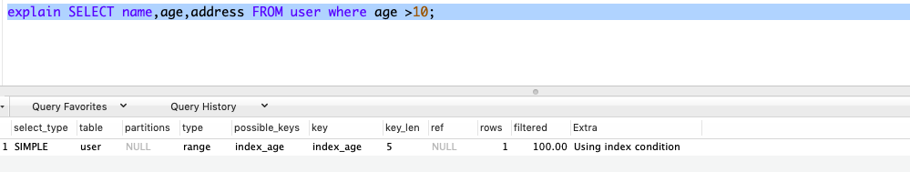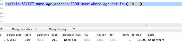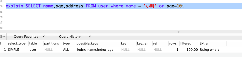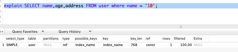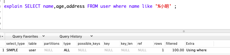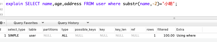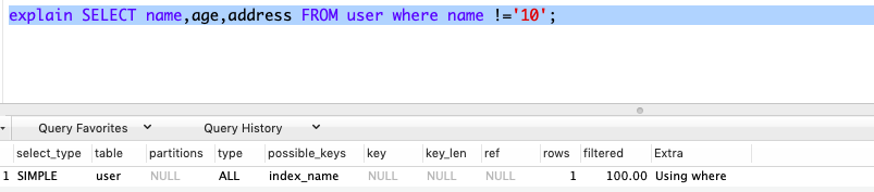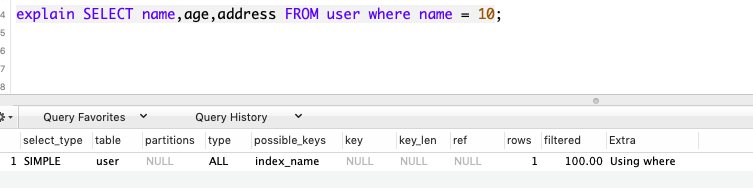 explain SELECT name,age,address FROM user where cast(name as signed)= 10;