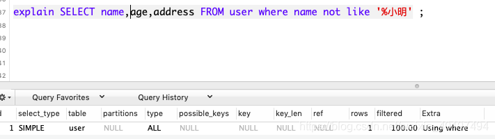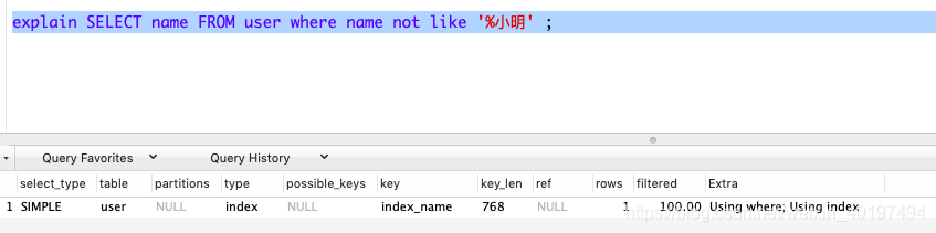 (not , not in, not like, <>, != ,!>,!< ) 使用索引效果
