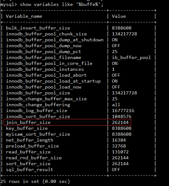 我:逐條比較兩個(gè)表的語(yǔ)句是比較慢的,因此我們可以把兩個(gè)表中數(shù)據(jù)依次讀進(jìn)一個(gè)內(nèi)存塊中, 以MySQL的InnoDB引擎為例,使用以下語(yǔ)句我們必然可以查到相關(guān)的內(nèi)存區(qū)域show variables like '%buffer%'
