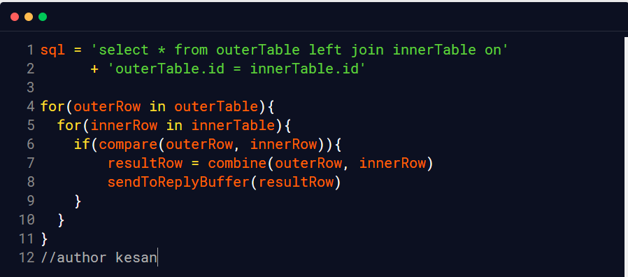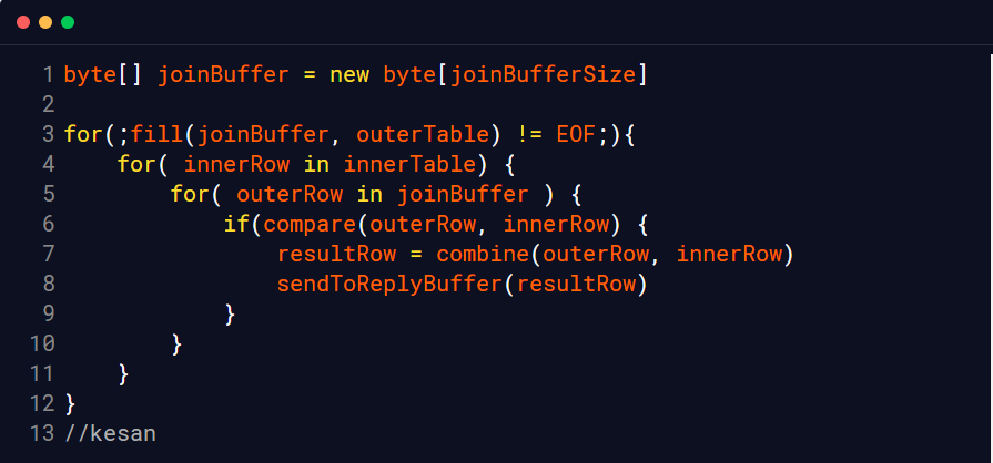 嵌套循環(huán),每次只讀取表中的一行數(shù)據(jù),也就是說(shuō)如果outerTable有10萬(wàn)行數(shù)據(jù), innerTable有100行數(shù)據(jù),需要讀取10000000次(假設(shè)這兩個(gè)表的文件沒(méi)有被操作系統(tǒng)給緩存到內(nèi)存, 我們稱(chēng)之為冷數(shù)據(jù)表)