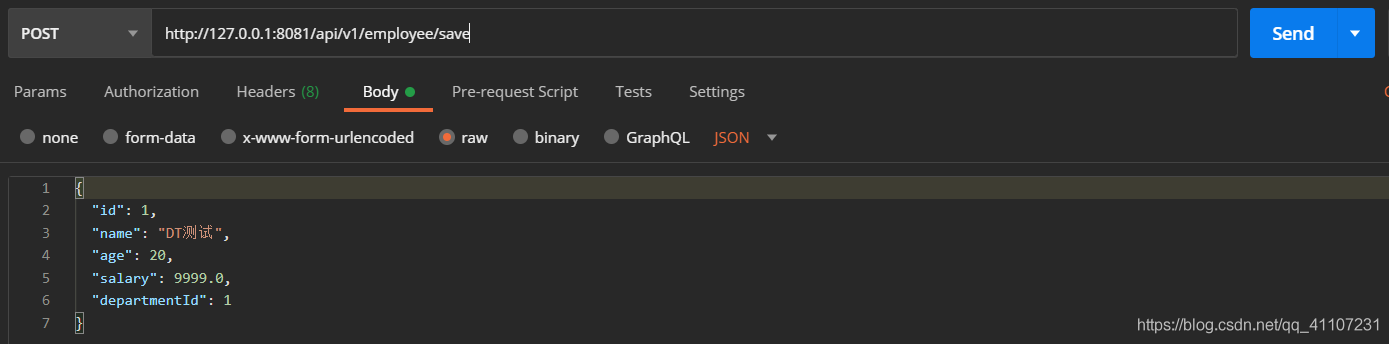 VALUES (#{id},#{name},#{age},#{salary},#{departmentId})