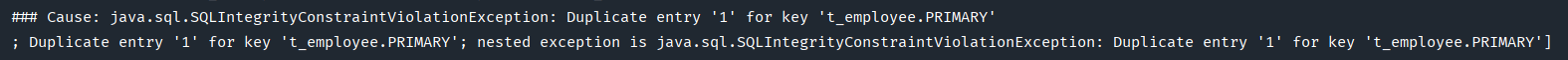 當我再發(fā)送一次請求的時候,會報SQL語句執(zhí)行錯誤,因為主鍵唯一,并且ID=1的記錄已經(jīng)存在了。