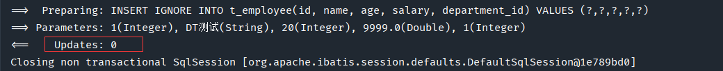加上ignore,再次添加一條ID=1的員工記錄