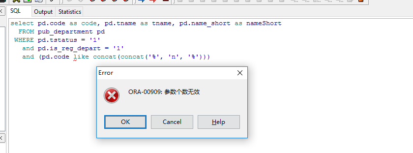 java.sql.SQLSyntaxErrorException: ORA-00909: 參數(shù)個數(shù)無效