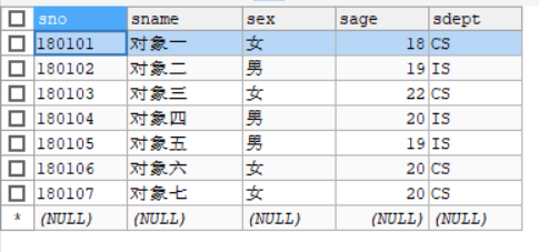 INSERT INTO `Student` VALUES('180105','對象五','男','19','IS'),('180106','對象六','女','20','CS'),('180107','對象七','女','20','CS')