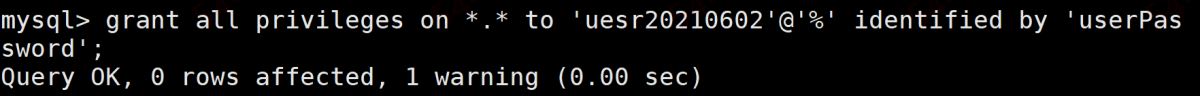 grant all privileges on *.* to 'userName'@'%' identified by 'yourPassword';