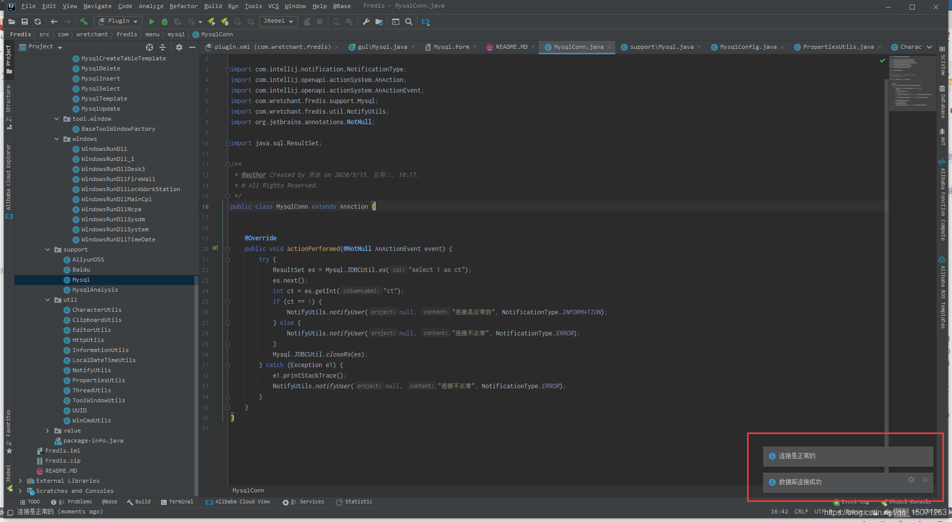 NotifyUtils.notifyUser(null, "數(shù)據(jù)庫連接成功", NotificationType.INFORMATION);