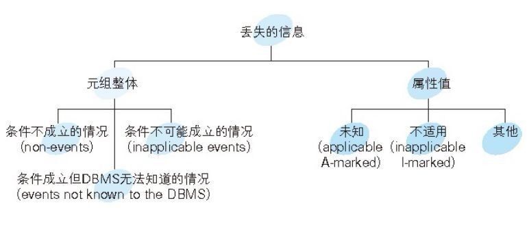 關(guān)系模型的發(fā)明者 E.F. Codd 最先給出了這種分類。下圖是他對“丟失的信息”的分類