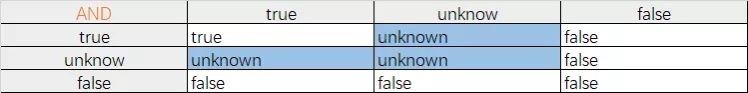 -- 3. 如果AND 運算里包含 unknown,結(jié)果不會是true