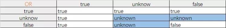 OR 的情況:true > unknown > false
