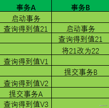 若隔離級(jí)別是“讀提交”,則 V1 是 21,V2 的值是 22。事務(wù) B 的更新在提交后對(duì) A 才是可見的。所以, V3 的值也是 22。
