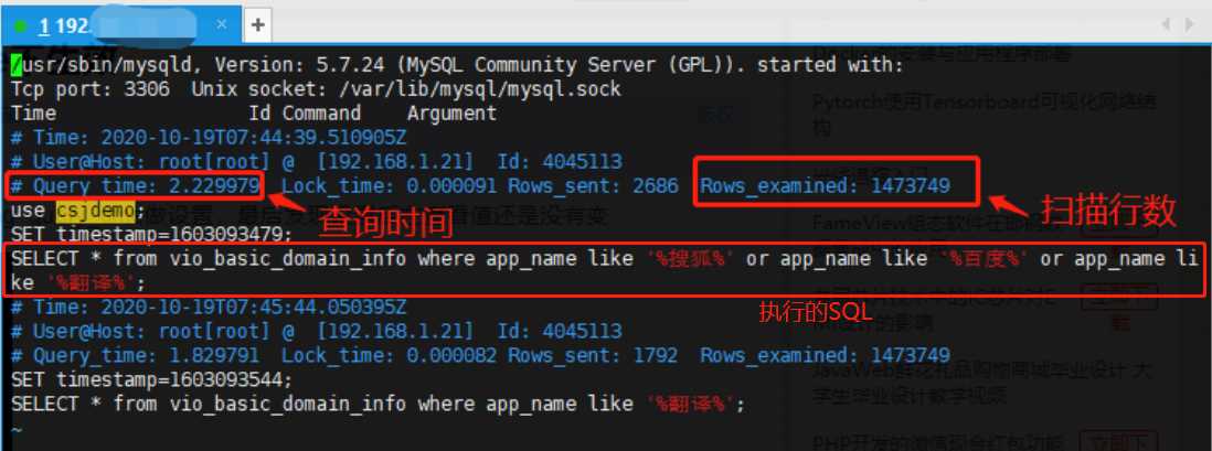 如上圖,是執(zhí)行時(shí)間超過1秒的SQL語句(測試)