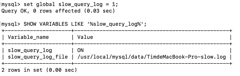 slow_query_log =1 slow_query_log_file=/var/lib/mysql/tim-slow.log