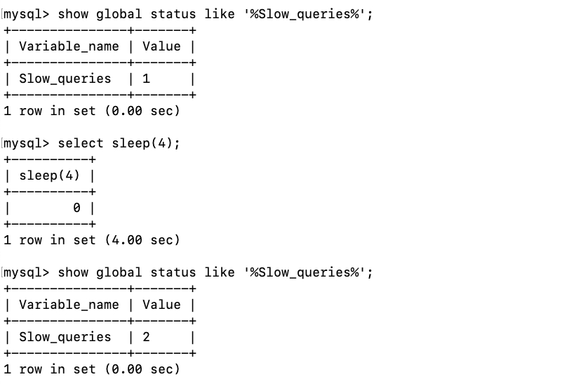 查詢當(dāng)前系統(tǒng)中有多少條慢查詢記錄: