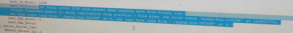 - the first event 'mysql-bin.000398' at 163800795,the last event read from './mysql-binlog.000398' at 4,the last byte read from './mysql-bin.000398' at 4'