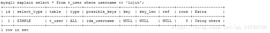 4、mysql使用不等于(!= 或者<>)的時候,無法使用索引,會導(dǎo)致索引失效
