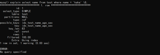 然后隨便執(zhí)行一條不執(zhí)行索引的語句即可在這個日志中查看到此語句