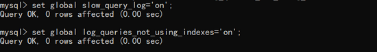 set global log_queries_not_using_idnexes='on'; set global log_queries_not_using_indexes='on';