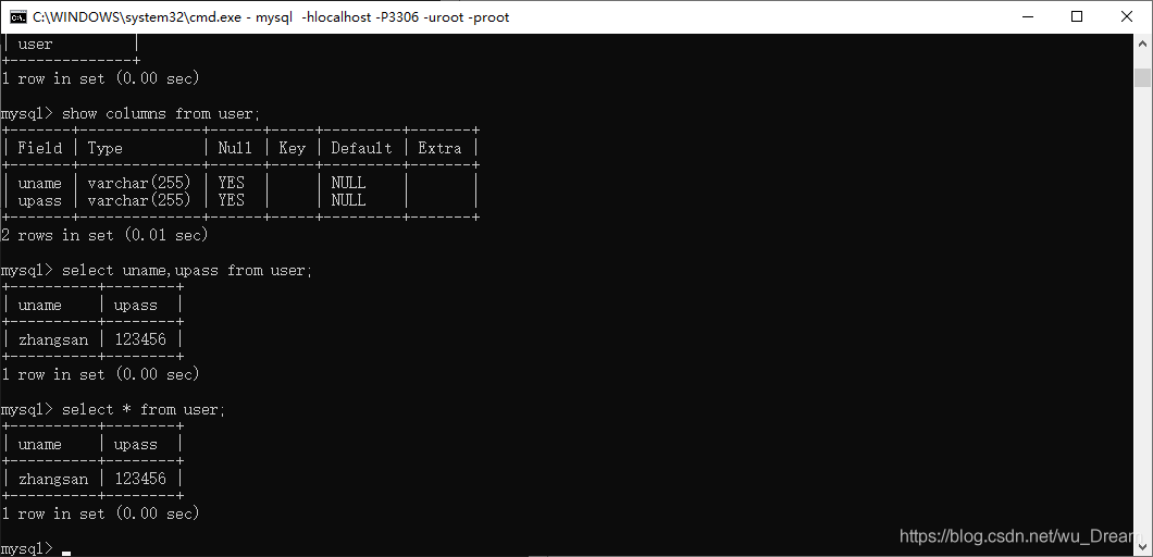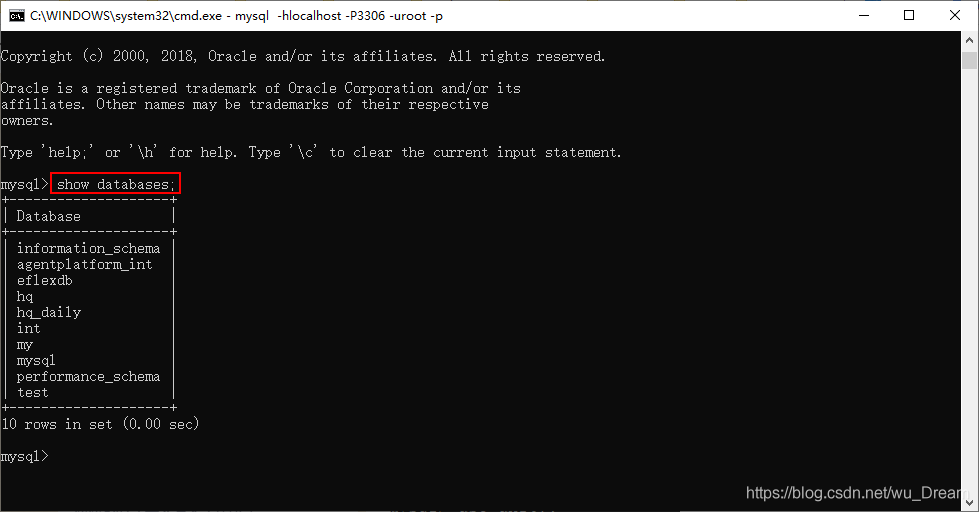 3、執(zhí)行訪問數(shù)據(jù)庫的命令: