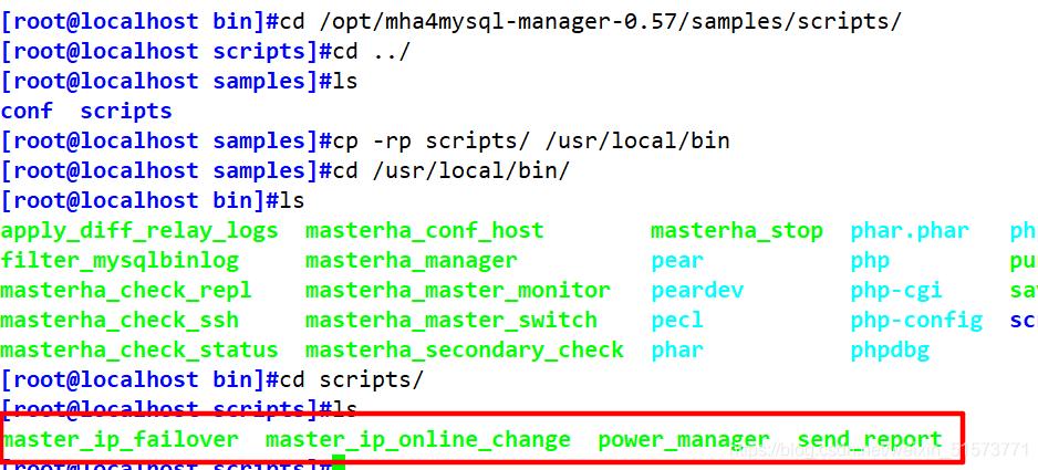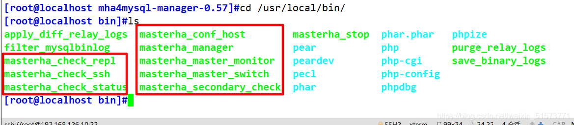 #node 組件安裝后也會(huì)在/usr/local/bin 下面會(huì)生成幾個(gè)腳本(這些工具通常由 MHAManager 的腳本觸發(fā),無需人為操作)主要如下:
