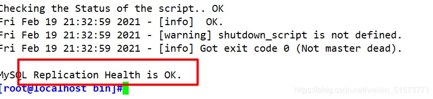 11.在 manager 節(jié)點(diǎn)上測(cè)試 mysql 主從連接情況,最后出現(xiàn) MySQL Replication Health is OK 字樣說明正常。如下所示。