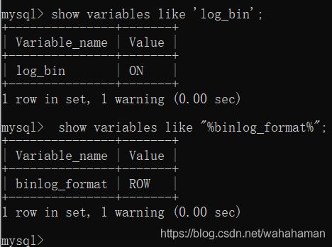 show variables like 'log_bin'; show variables like "%binlog_format%";
