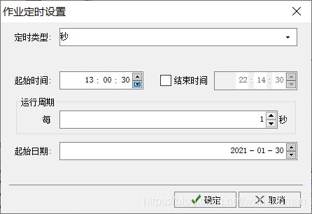 在【調(diào)度窗口】通過快捷菜單【添加】把將要執(zhí)行的實(shí)時(shí)日志解析作業(yè)載入,選中調(diào)度窗口的實(shí)時(shí)作業(yè),點(diǎn)擊工具欄【定時(shí)】按鈕,設(shè)置按秒定時(shí),運(yùn)行周期1秒。