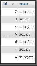 用distinct來返回不重復的用戶名:select distinct name from user;,結果為: