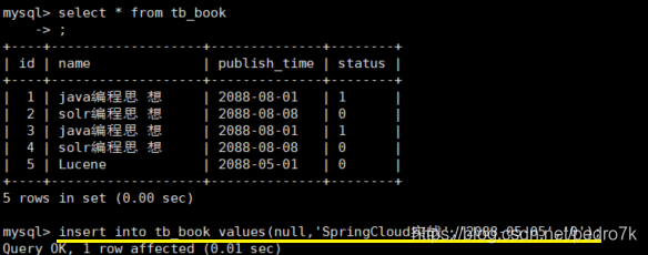 insert into tb_book values(null,'Lucene','2088-05-01','0');