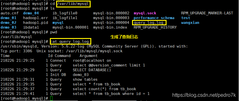 該日志是默認(rèn)開啟的 , 默認(rèn)存放目錄為 mysql 的數(shù)據(jù)目錄(var/lib/mysql), 默認(rèn)的日志文件名為 hostname.err(hostname是主機(jī)名)。