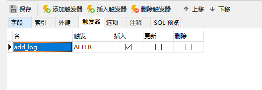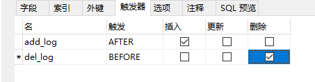 然后我們再用navicat創(chuàng)建一個delete觸發(fā)器: