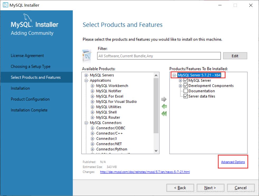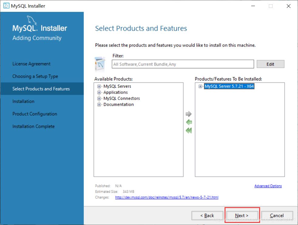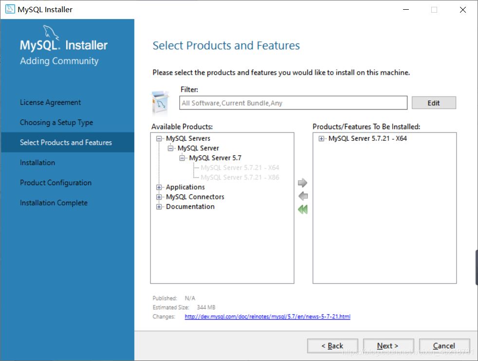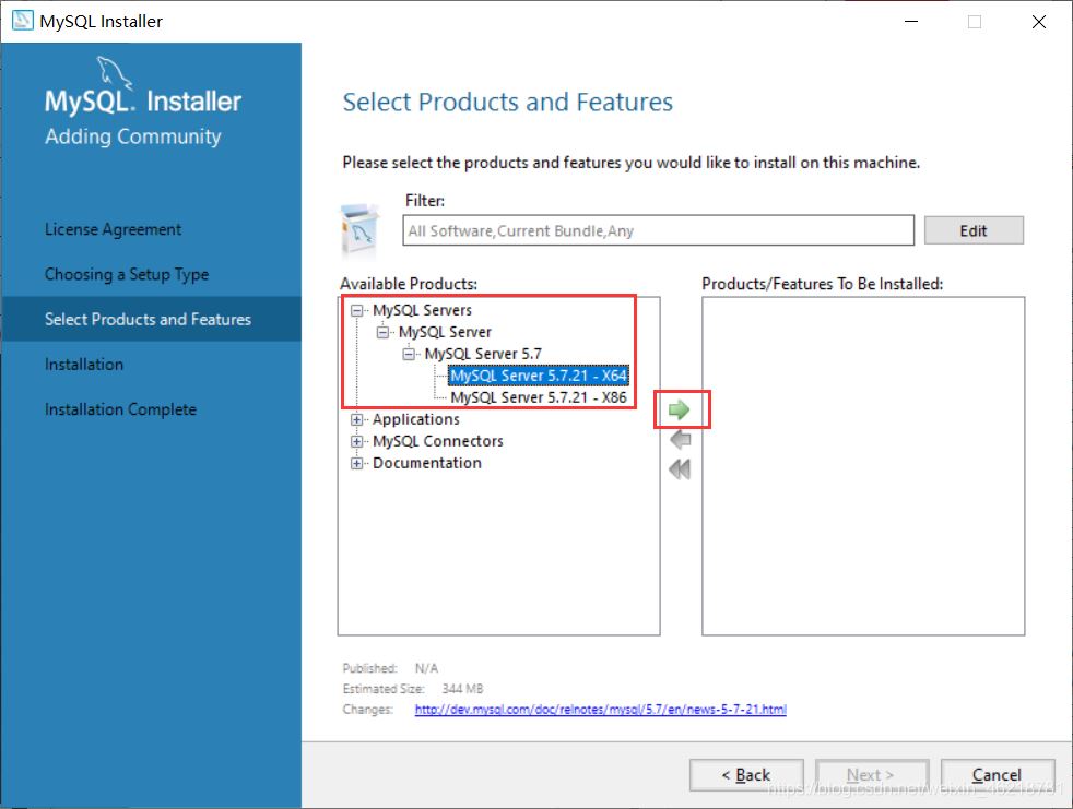 4、點(diǎn)開這個(gè)框,選擇64位或32位的MySQL,現(xiàn)在一般電腦都是64的吧,點(diǎn)擊中間那個(gè)箭頭: