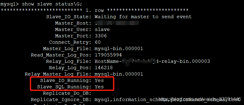 輸入以下命令,會(huì)出來很多信息,但是主要看Slave_IO_Running與Slave_SQL_Running這兩個(gè)字段都顯示yes就行了。