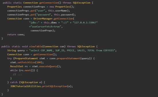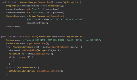 參考 JDBC API docs,默認模式 Java demo 代碼如下