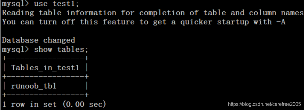 1、在test1庫(kù)下創(chuàng)建數(shù)據(jù)庫(kù)表runoob_tbl