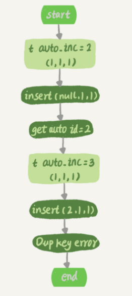 假設(shè)有表t ,id是自增主鍵,在已有 (1,1,1)的情況下,插入一條 (null,1,1),那么執(zhí)行過程就如下: