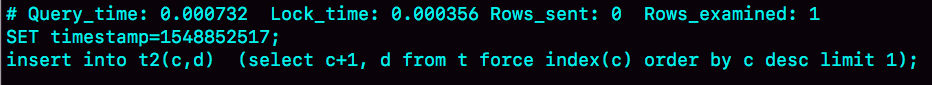 insert into t2(c,d) (select c+1, d from t force index(c) order by c desc limit 1);