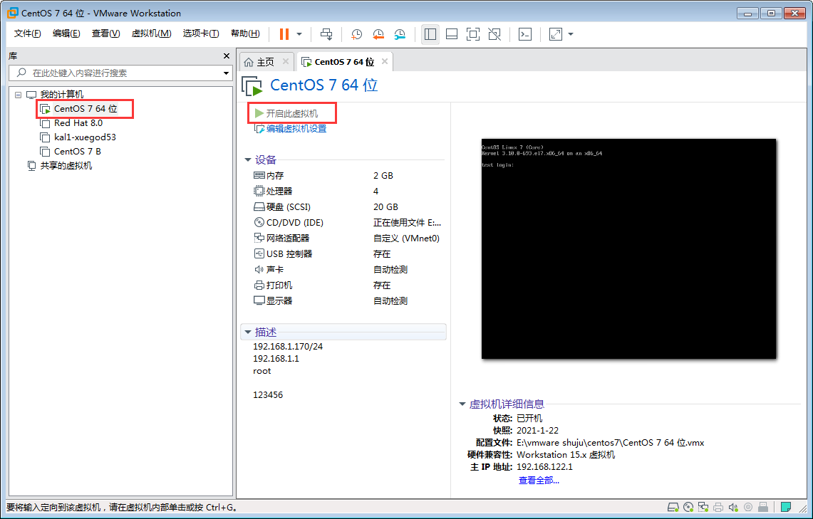 二丶下面打開虛擬機并且使用遠程工具xshell連接&CRT連接。