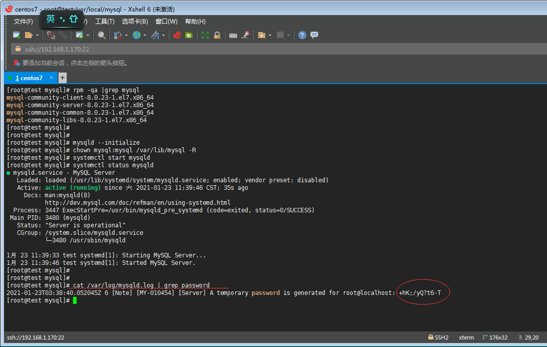 J丶通過cat /var/log/mysqld.log | grep password 查看root初始密碼