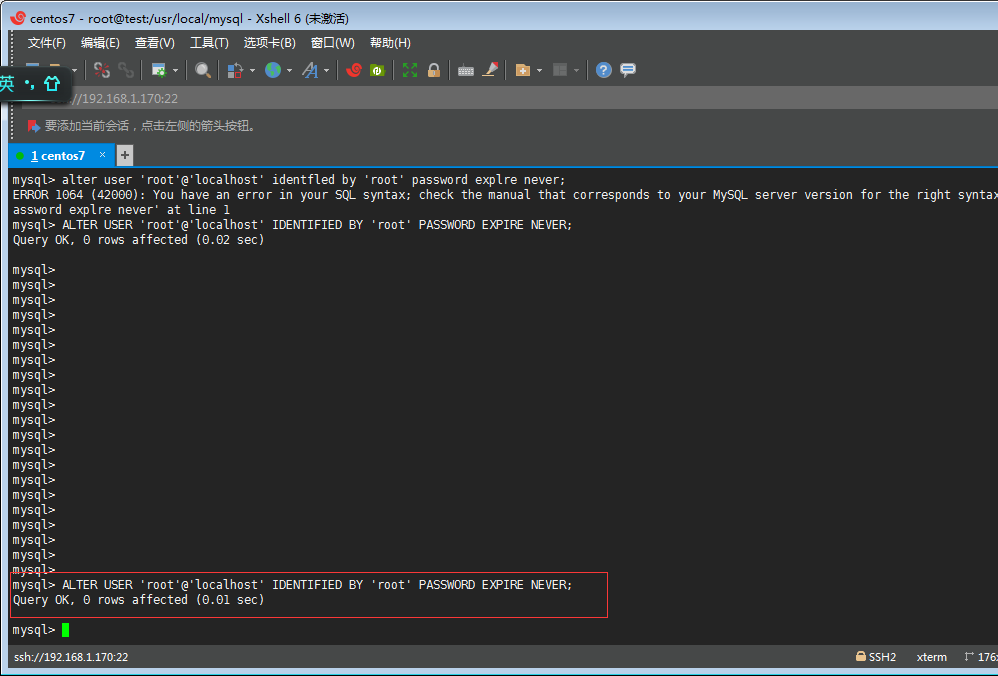 K丶使用root用戶登錄mysql ,并修改root用戶密碼
