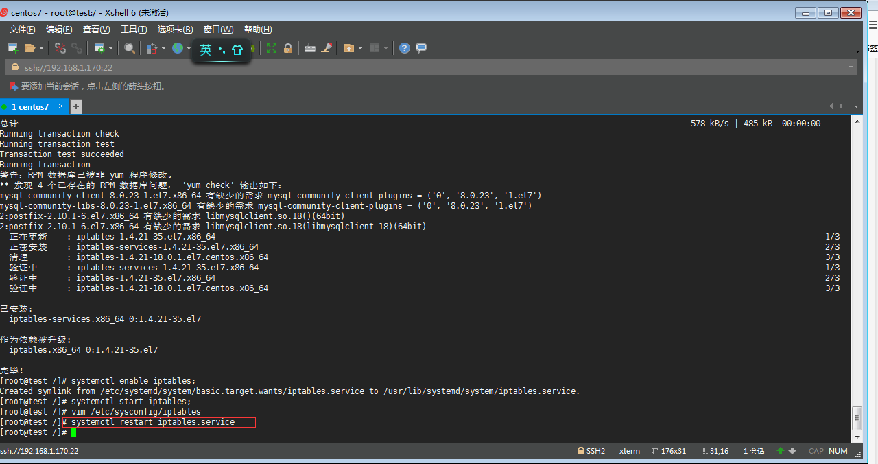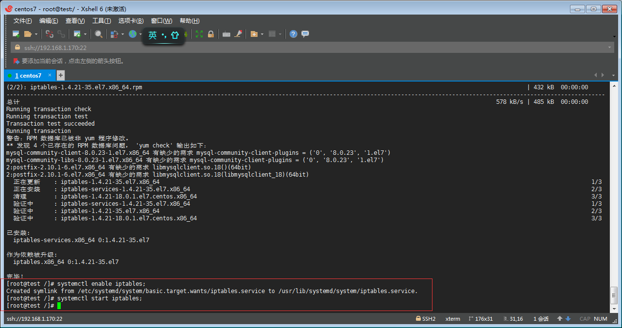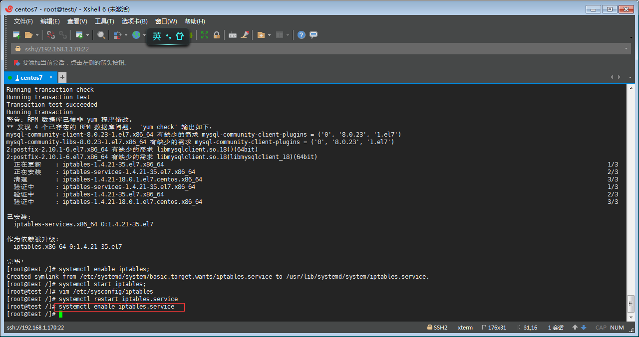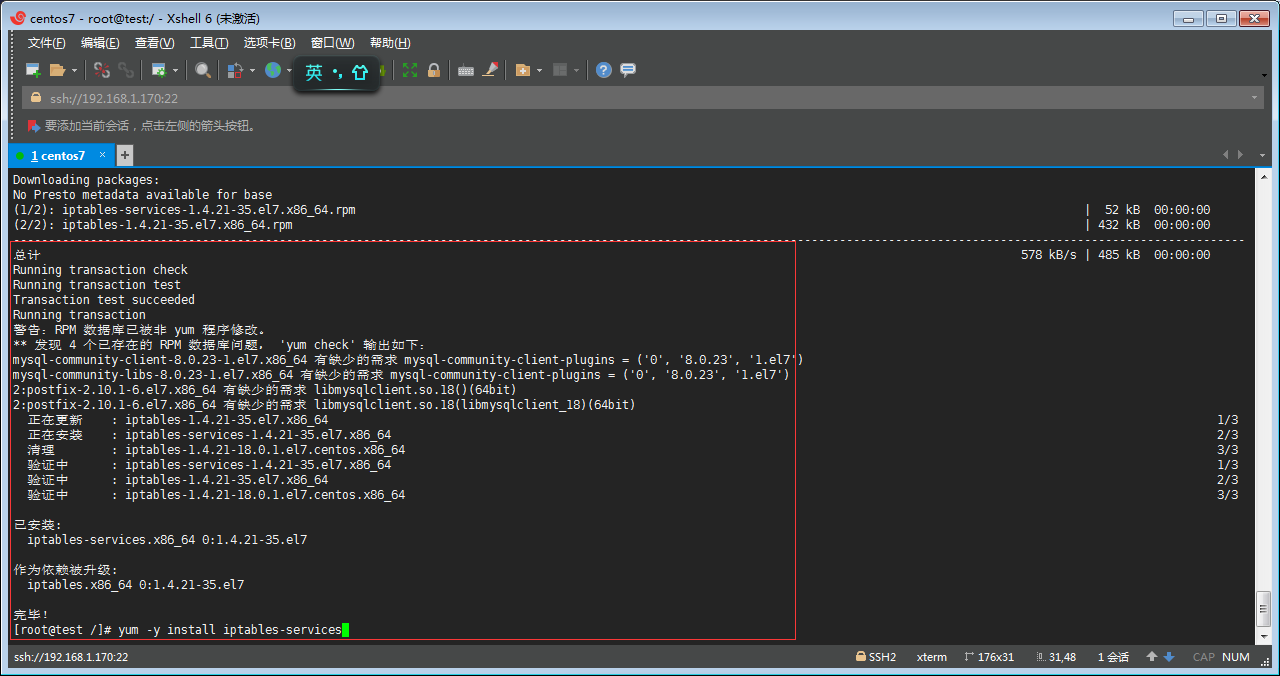 Q丶通過yum -y install iptables-services 命令安裝 iptables 防火墻