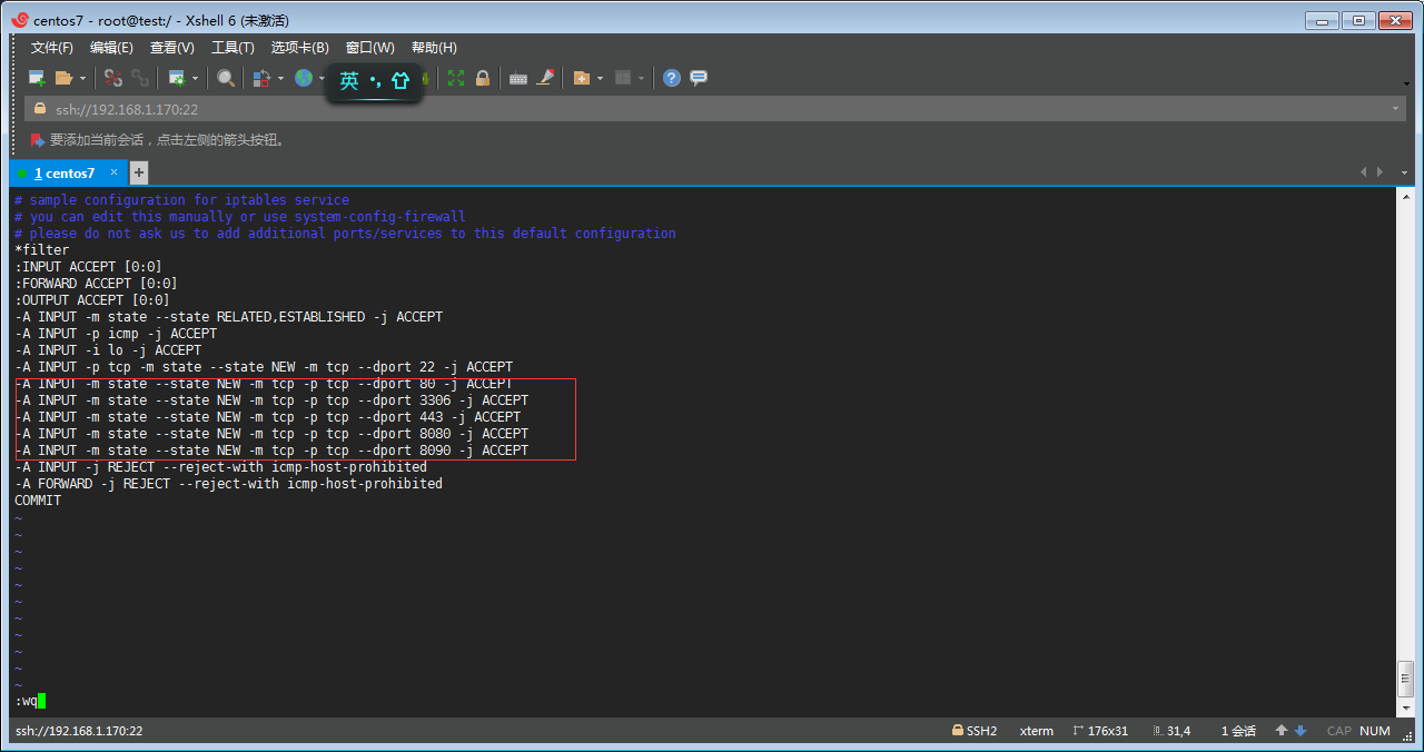 S丶通過 vim /etc/sysconfig/iptables 命令編輯防火墻,添加端口
