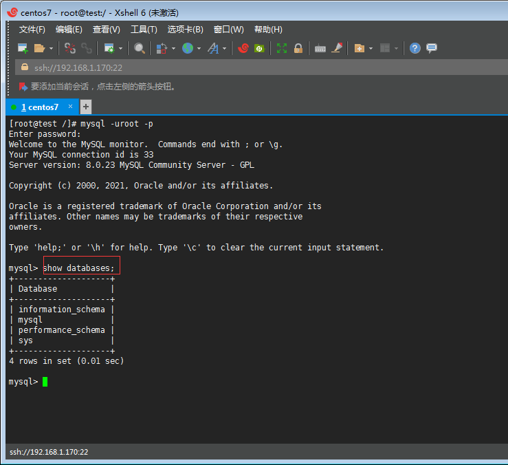Z丶使用命令show databases;查看所有的數(shù)據(jù)庫