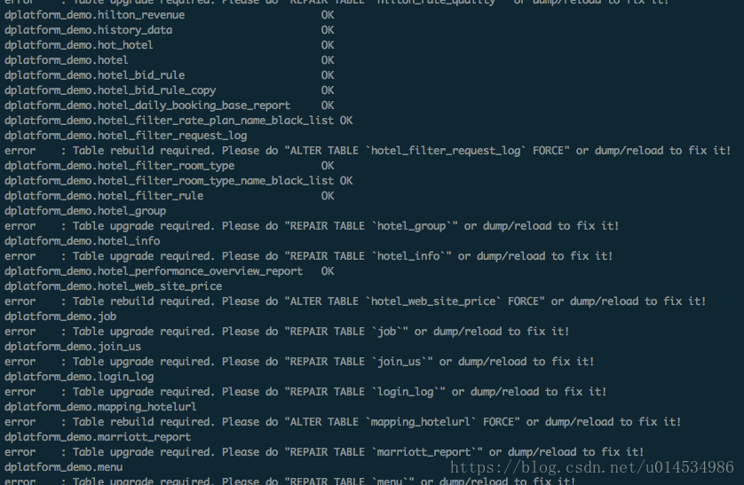 可能會(huì)有一些error提示"ALTER TABLE ** FROCE",這些錯(cuò)誤不用擔(dān)心mysql在后面會(huì)自動(dòng)修復(fù)repair的時(shí)間可能會(huì)有點(diǎn)長,要看你的數(shù)據(jù)庫情況,我這次升級花了兩個(gè)多小時(shí)