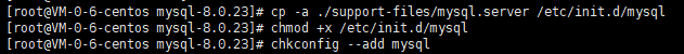 進(jìn)入主目錄 cd /opt/mysql/mysql-8.0.23 添加mysqld服務(wù)到系統(tǒng) cp -a ./support-files/mysql.server /etc/init.d/mysql 授權(quán)以及添加服務(wù) chmod +x /etc/init.d/mysql chkconfig --add mysql