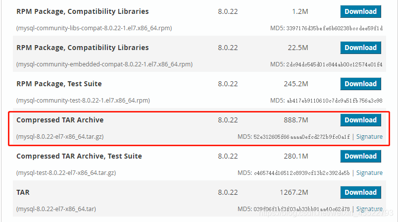 [root@MyDB1 ~]# cd /usr/local/software/ [root@MyDB1 software]# md5sum mysql-8.0.22-el7-x86_64.tar.gz 52e312605f66aaaa0efcd272b9fc0a1f mysql-8.0.22-el7-x86_64.tar.gz