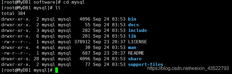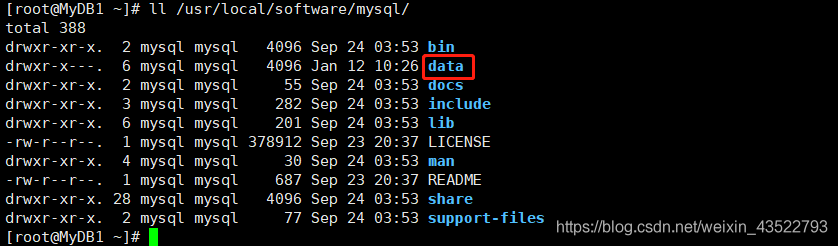 [root@MyDB1 ~]# cd /usr/local/software/ [root@MyDB1 software]# chown -R mysql:mysql mysql*